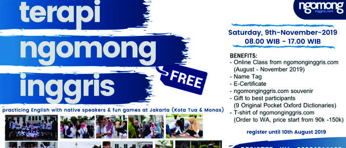 Terapi Ngomong Inggris is practicing English with native speakers & fun games at Jakarta (Kota Tua & Monas) that held by ngomonginggris.com for free.