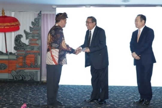 Penyerahan surat dukungan dari Menristek Dikti, Prof. M. Natsir kepada Ketua Pengurus YMIK, Dr. Ramlan Siregar, M.Si didampingi oleh Rektor UNSIA, Jang Youn Cho, MBA., CPA, pada acara HAKTEKNAS, Bali, 23 Agustus 2019